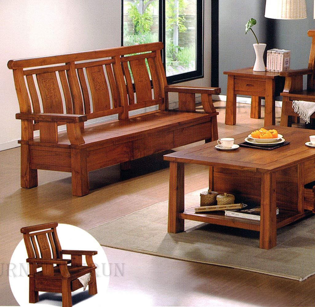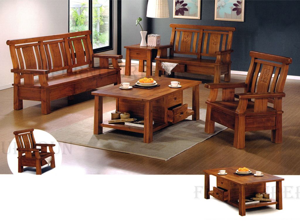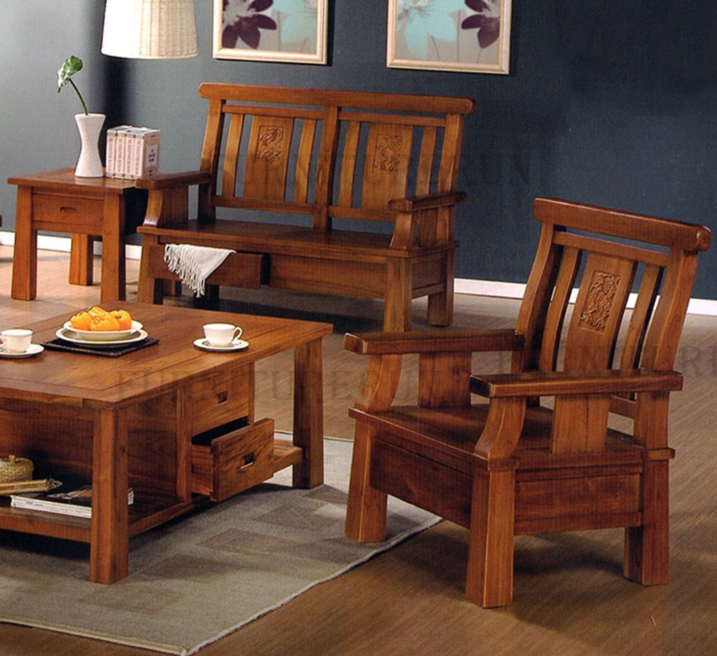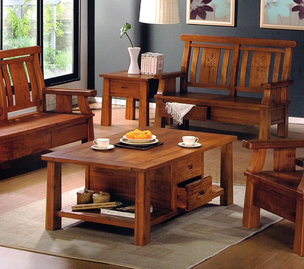 ALJA. A0107 Teak Wood 1+2+3 Sofa Set with Coffee and End Table