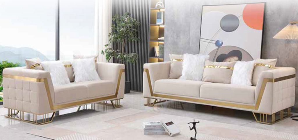 2 Seater - H750 x D900 x W1730MM3 Seater - H750 x D900 x W2340MM High Quality Velvet Fabric with Stainless Steel Gold Frame(All Pillows is Included)