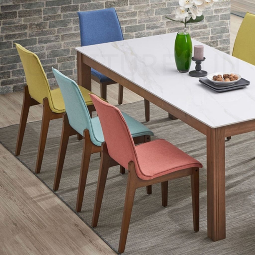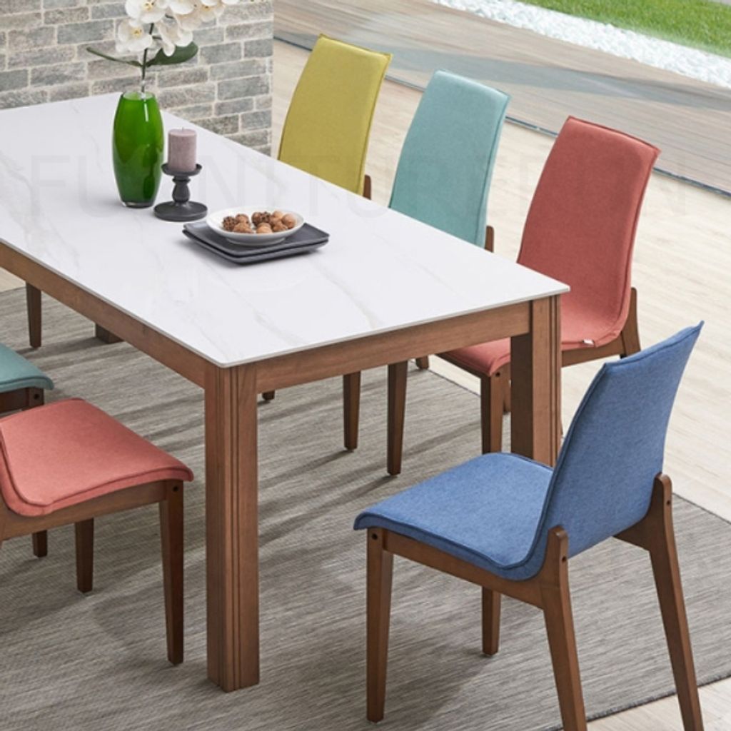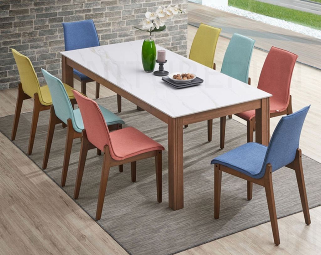 Table - H740 x D900 x W2000MM Sintered Stone TopChair - H916/465 x D450 x W565MM WalnutDark Blue, Dark Grey, Lemon, Orange, Sky Blue