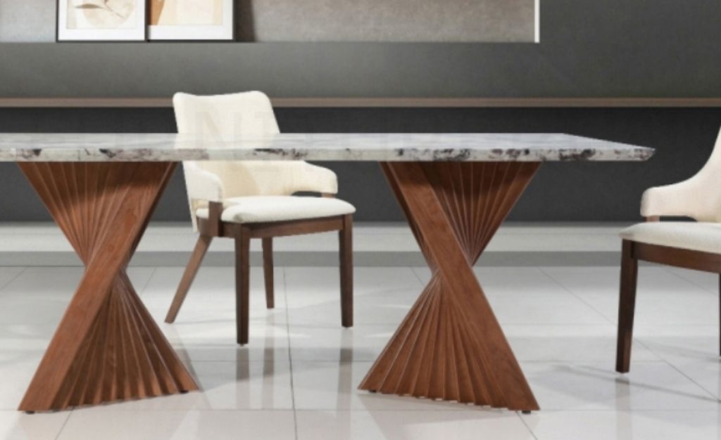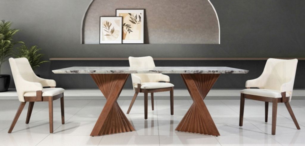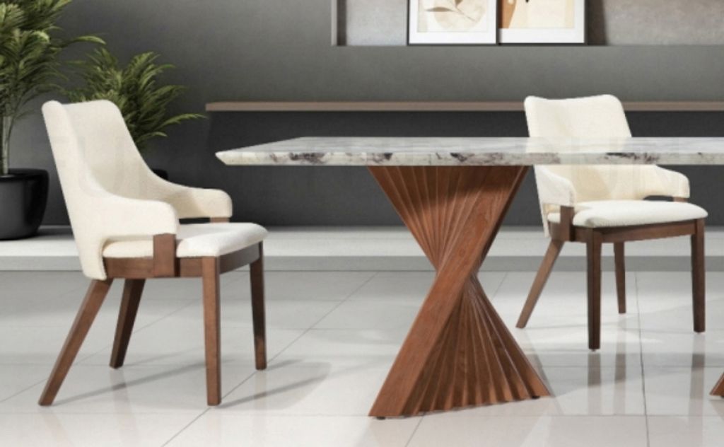 Table - H750 x D1000 x W2000MM Marble Top + Walnut FrameChair - H855/480 x D565 x W555MM Beige