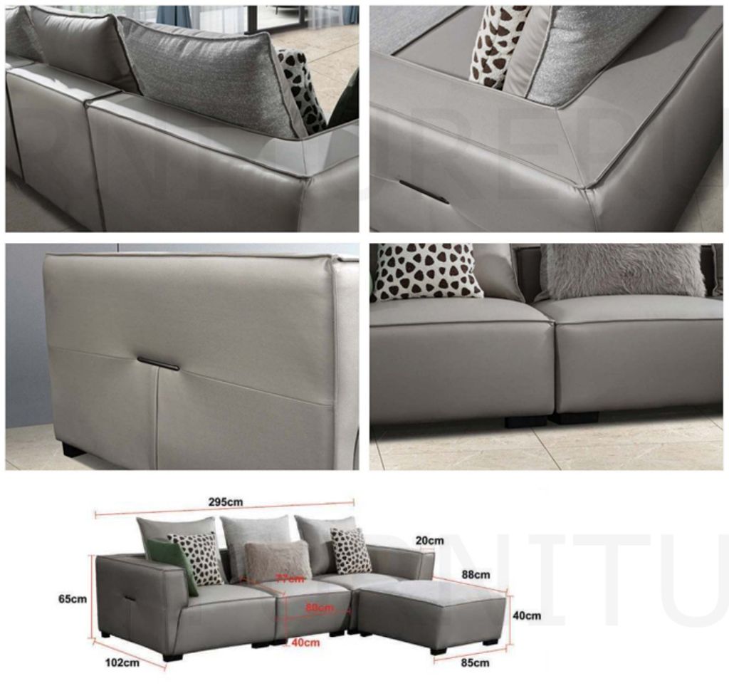 Sofa - H650 x D1020 x W2950MMOttoman - H400 x D880 x W850MM Inner Frame - Solid Coniferous Pine Wood (2 Years Warranty)Seating - High Density Foam + SupraCoil + Elastic Belt (2 Years Warranty)Upholstery - Technology Fabric
