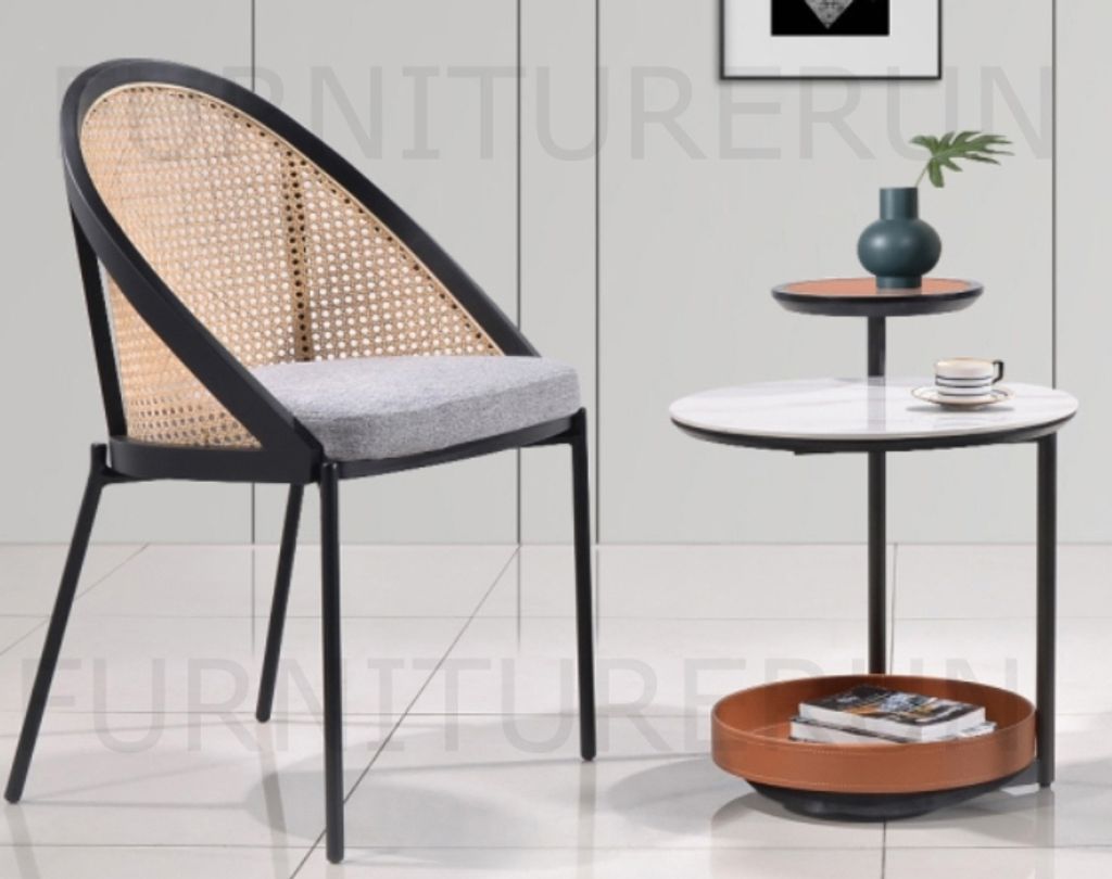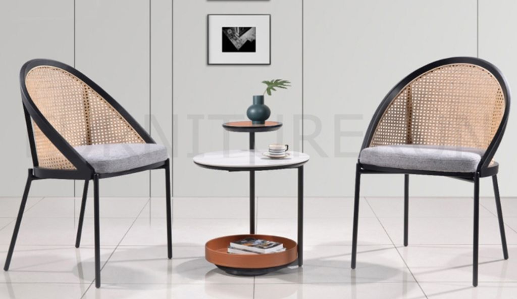 Table - H555/445/100 x Diam. 250/450/350MM White + BrownChair - H830/470 x D538 x W542MM Rattan Back/Cushion Seat & Black Metal LegsSan Remo 801#Grey