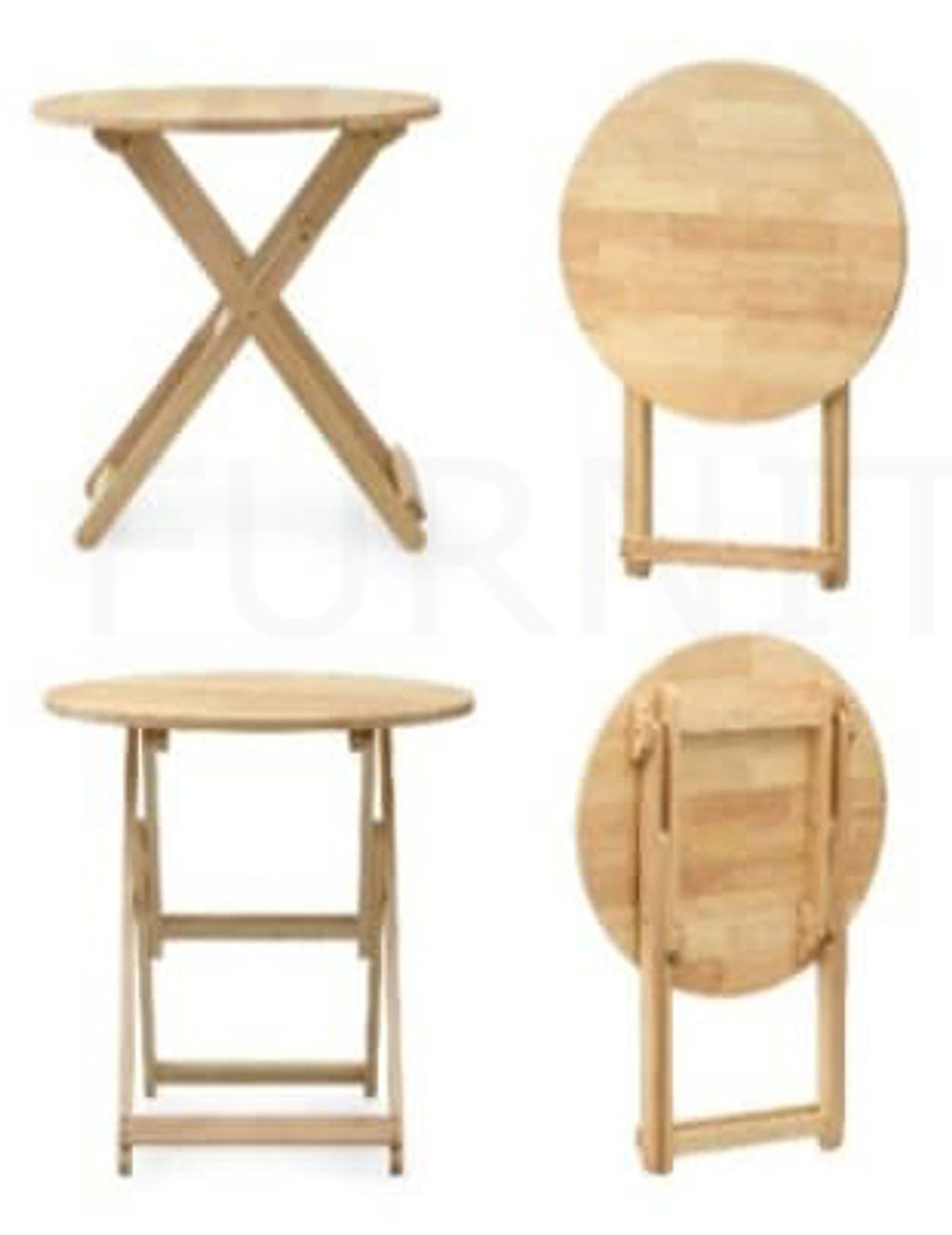 Table - H730 x Diam. 700MM Thickness 20MMChair - H820/450 x D410 x W400MM Solid RubberwoodNatural, WalnutFolding Table and Chair