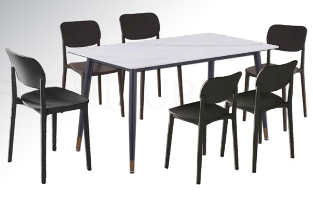 Table - H755 x D805 x W1400MMChair - H800 x D440 x W440MM Table - Powder Paint Steel Leg + Glossy Ceramic Top