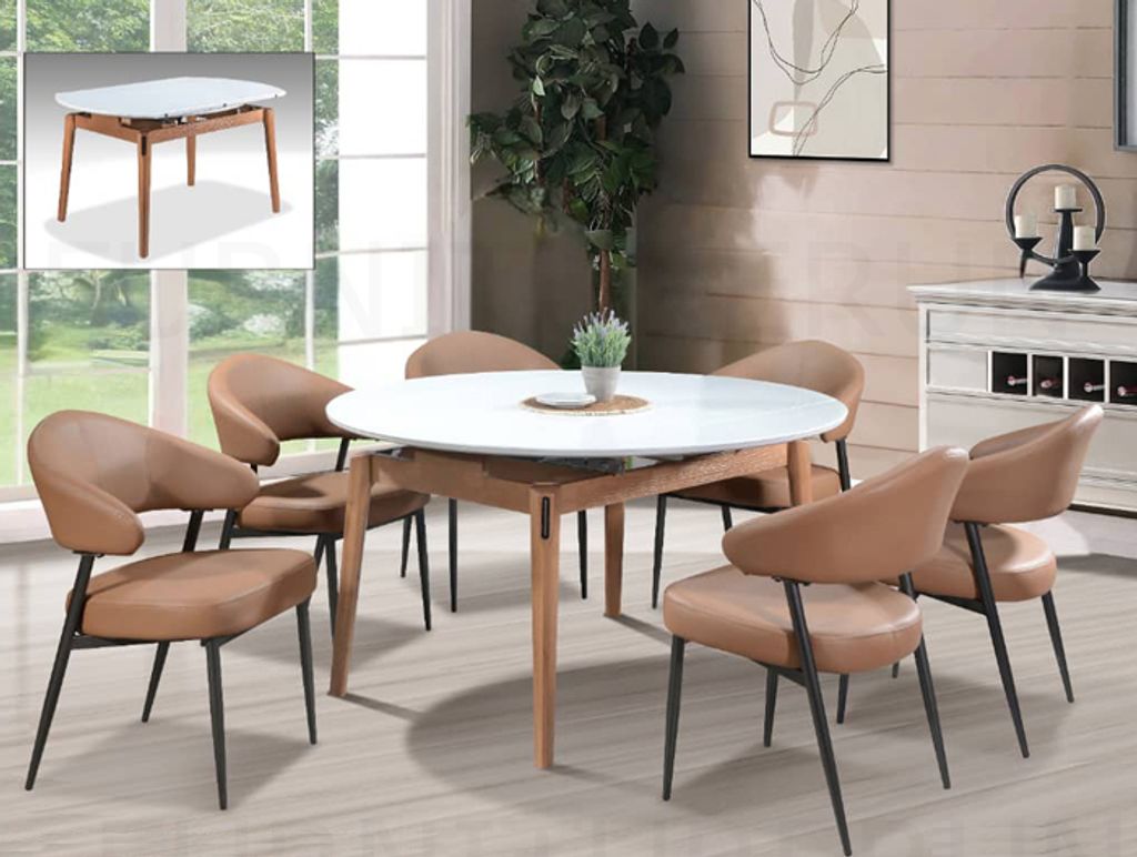 Table - H770 x Diam. 1330MM Extendable Top (Ceramic Top, Wooden Frame)Chair - H830/470 x D480 x W500MM Pocket Spring