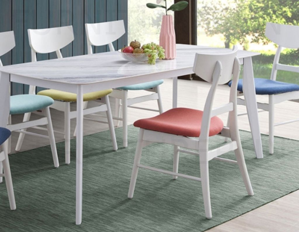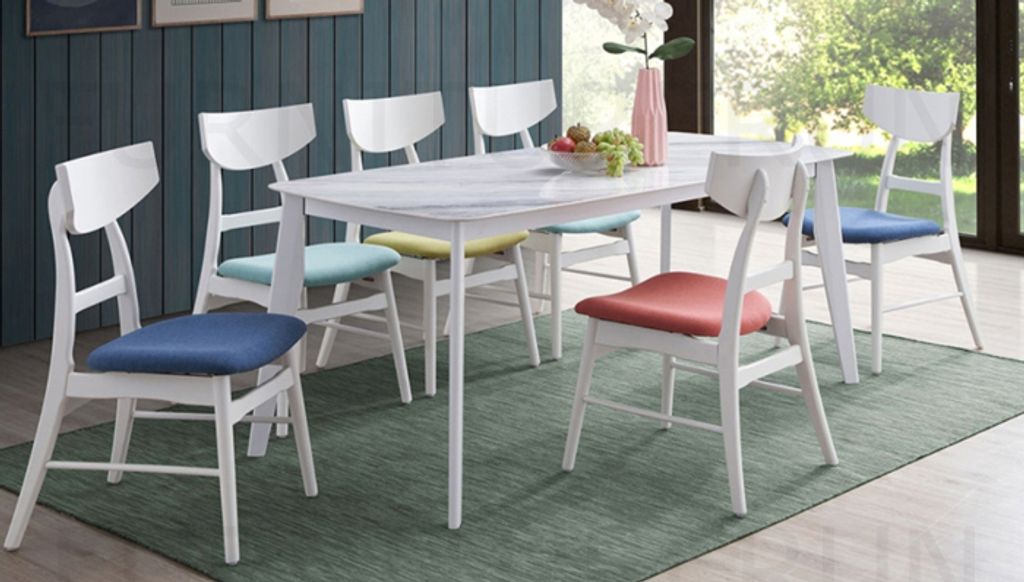Table - H750 x D900 x W1800MM Sintered Stone TopChair - H910/470 x D565 x W500MM Fabric - Dark Blue, Dark Grey, Lemon, Orange, Sky BlueWhite