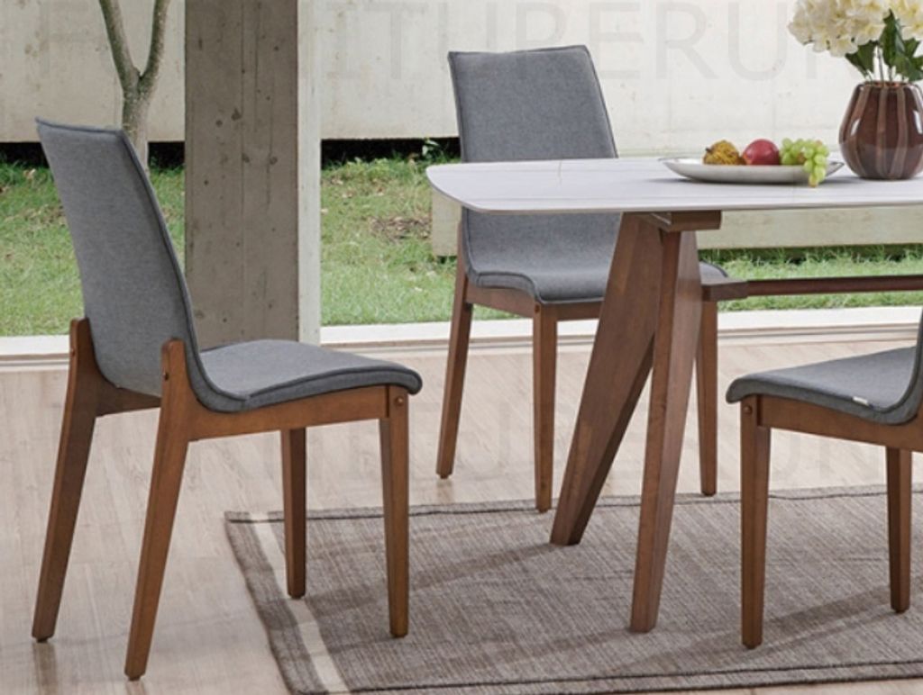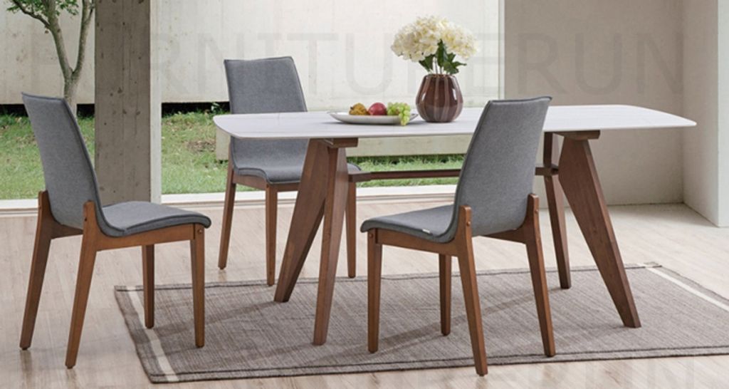 Table - H750 x D900 x W1800MM Sintered Stone TopChair - H916/465 x D450 x W565MM Dark Grey Walnut