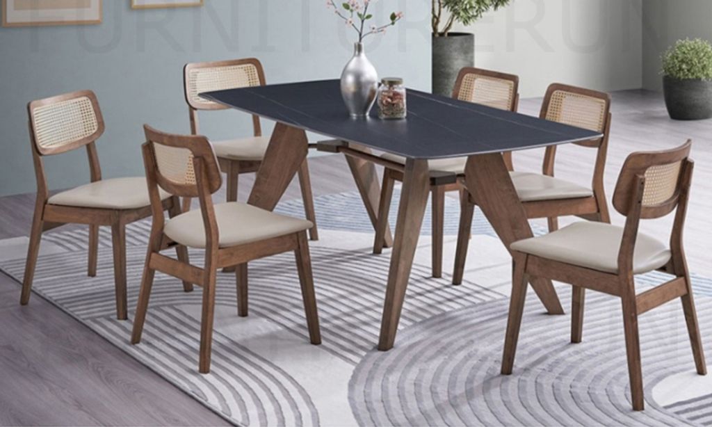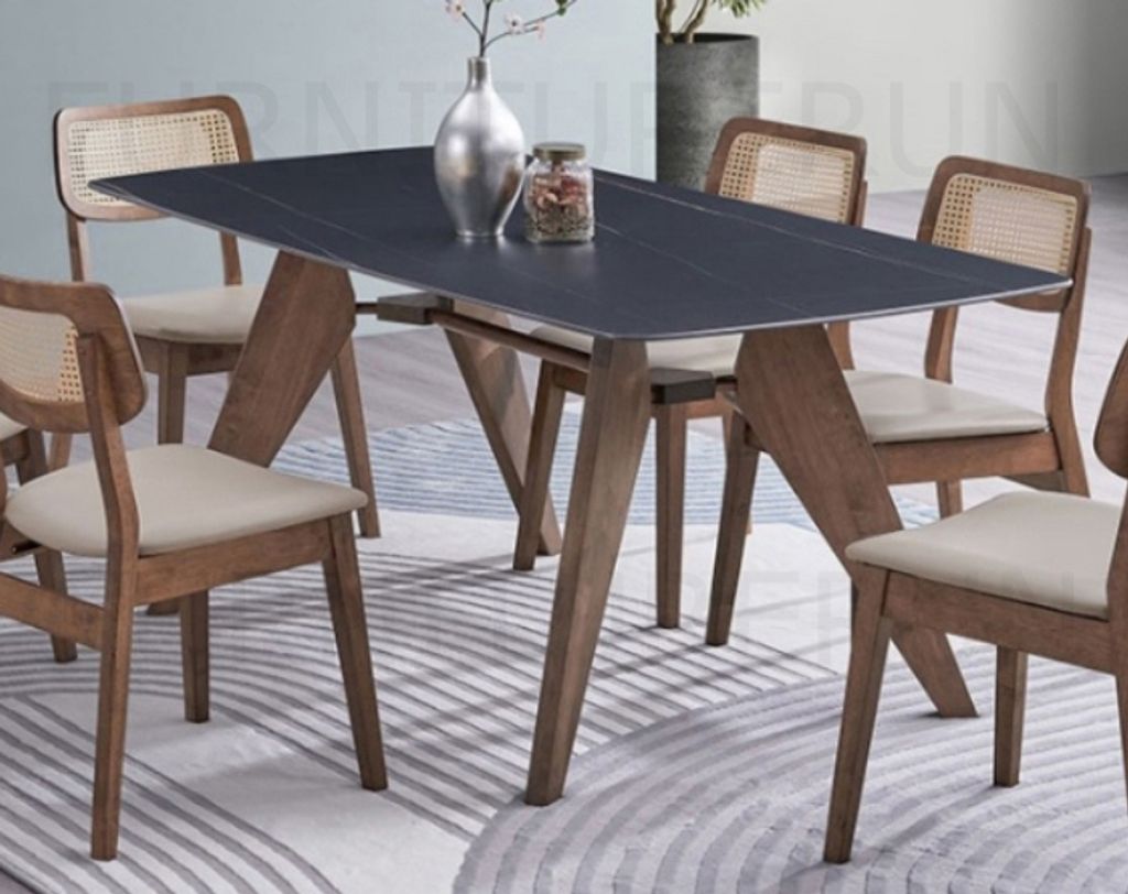 Table - H750 x D900 x W1800MM Sintered Stone TopChair - H820 x D530 x W490MM Walnut