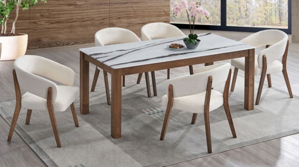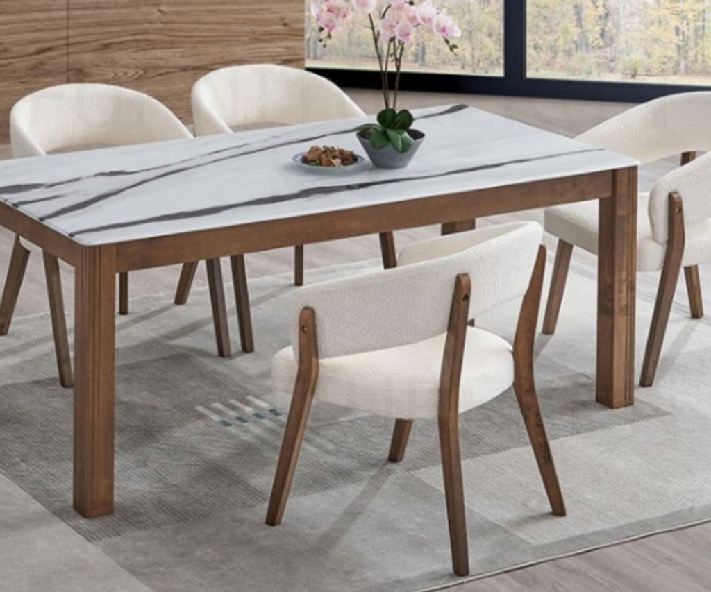 Table - H750 x D900 x W1800MM Diamond Crystal Marble TopChair - H810/475 x D600 x W580MM Beige 2# Walnut