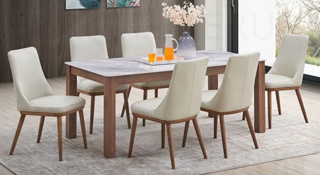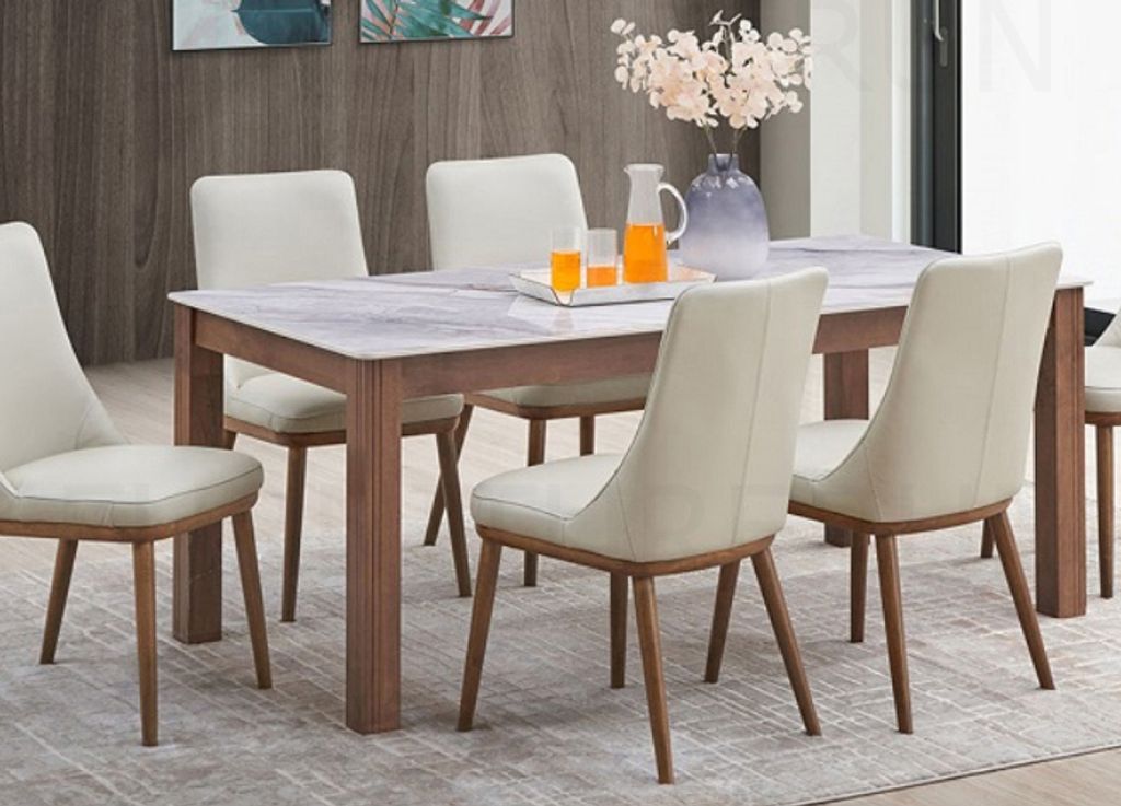 Table - H750 x D900 x W1800MM Sintered Stone TopChair - H935/500 x D620/465 x W475MM Beige Walnut