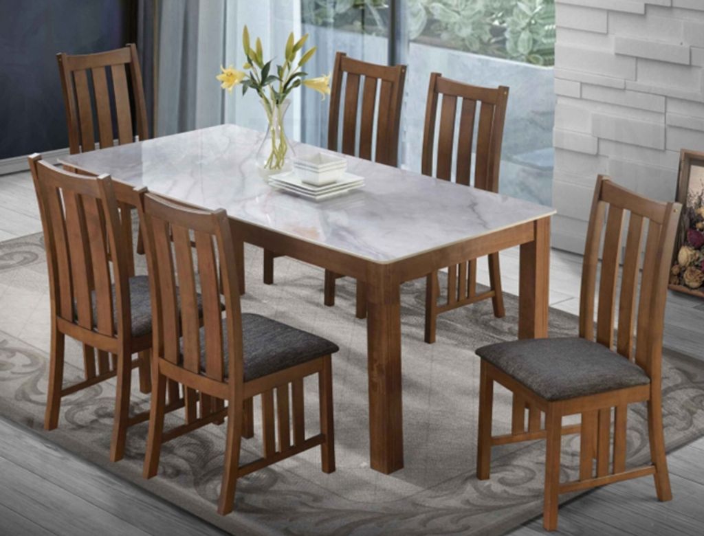 Table - H750 x D900 x W1800MM Sintered Stone TopChair - H907/467 x D505 x W460MM GreyWalnut