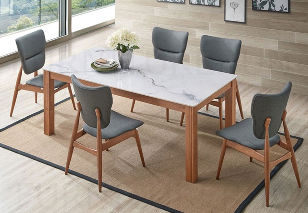 Table - H750 x D900 x W1800MM Sintered Stone TopChair - H950 x D595 x W500MM Walnut