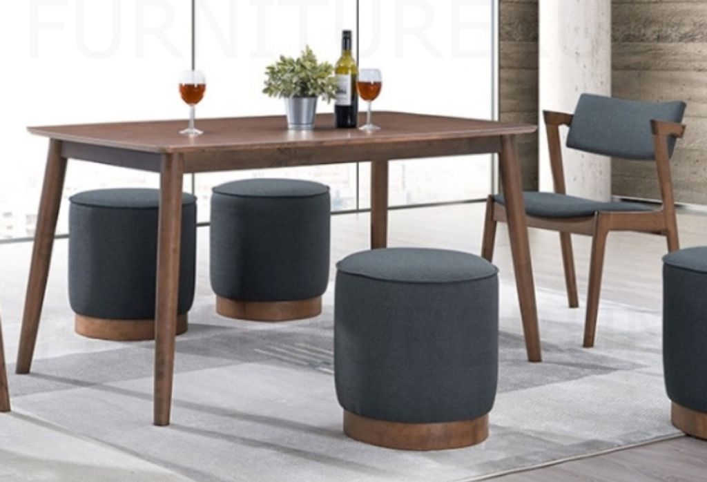 Table - H740 x D840 x W1470MM Chair - H790/465 x D585 x W540MM Stool - H470 x Diam. 430MM Walnut