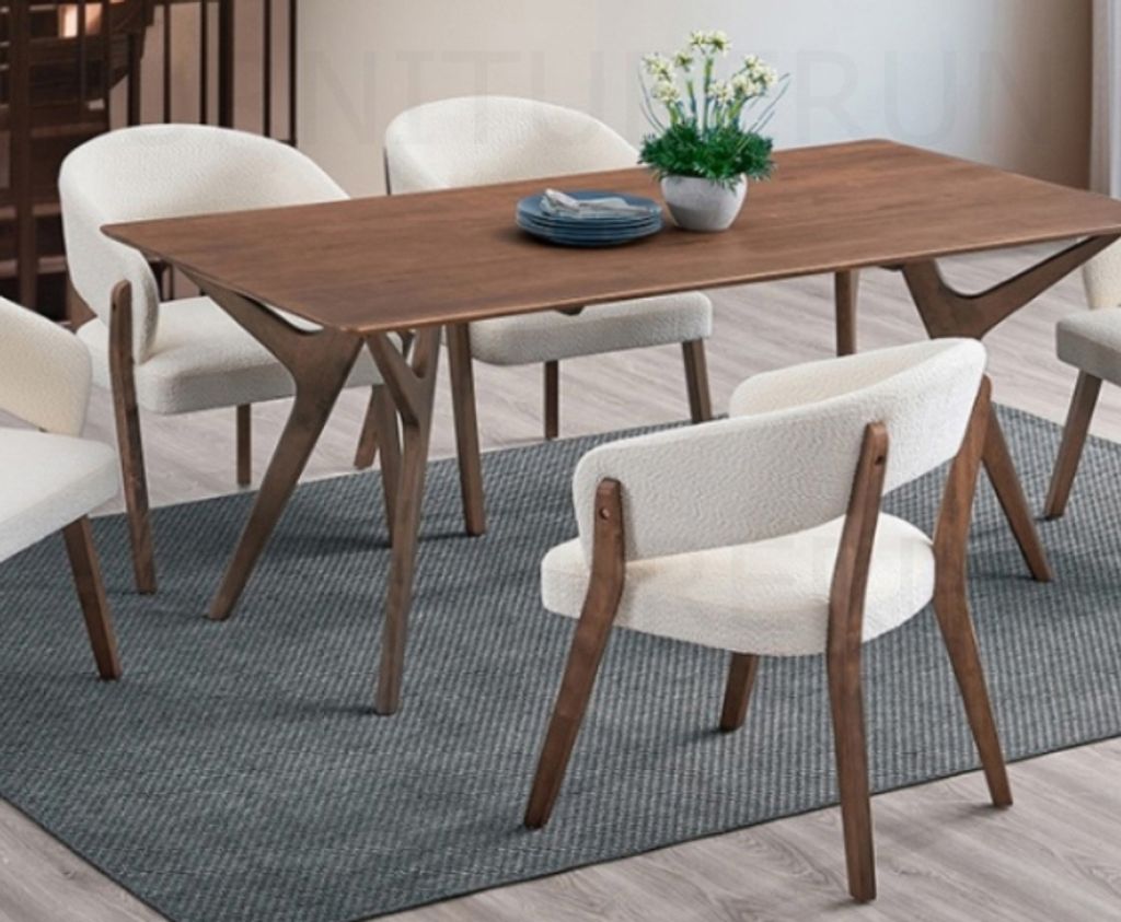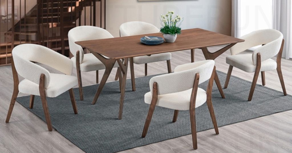 Table - H755 x D900 x W1800MM Chair - H810/475 x D600 x W580MM Beige 2#Walnut