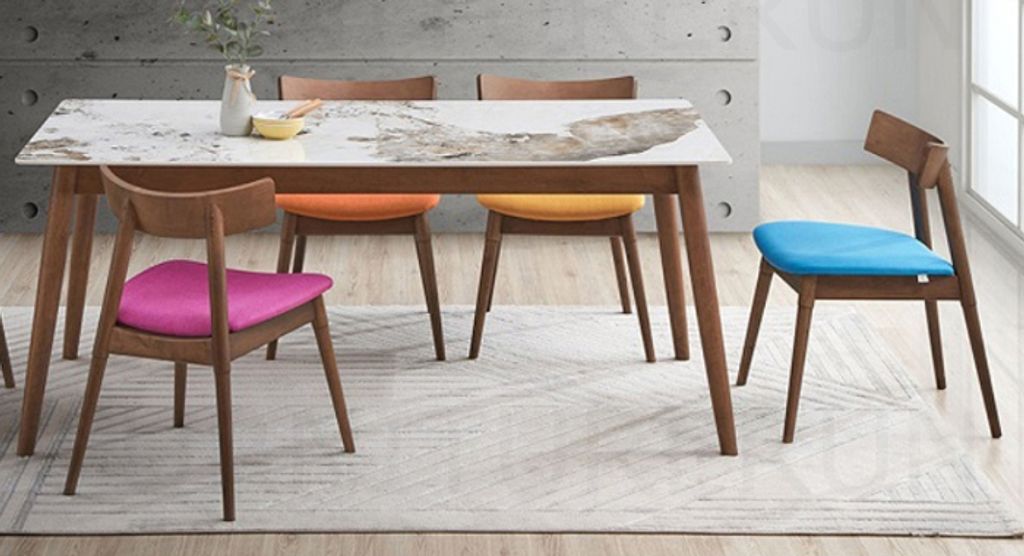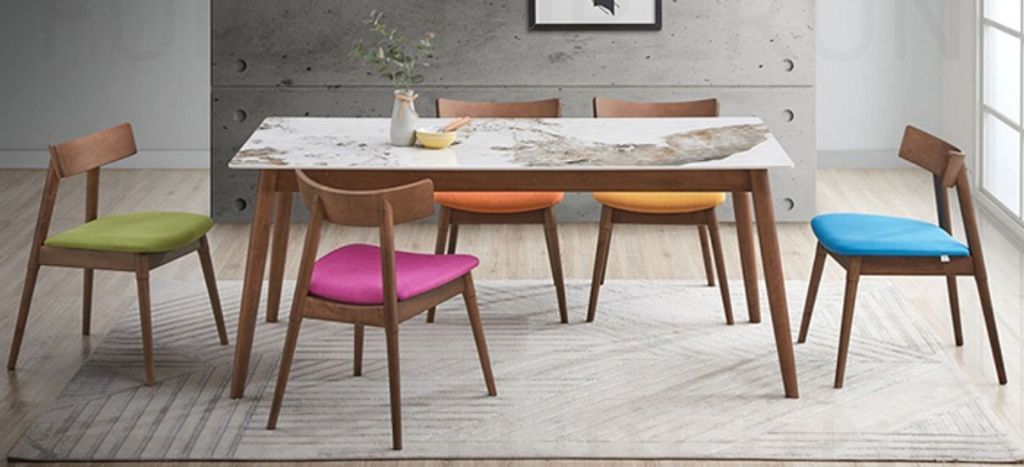 Table - H750 x D900 x W1800MM Sintered Stone TopChair - H755 x D560 x W530MM Blue, Green, Grey, Orange, PU BlackWalnut