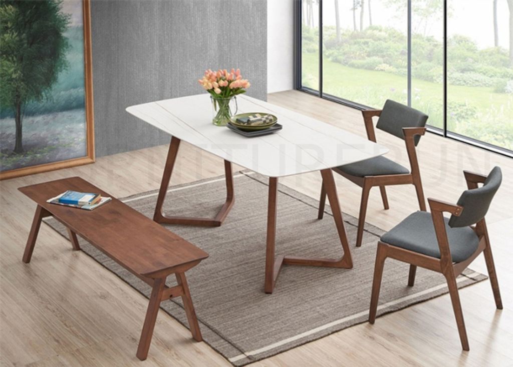 Table - H750 x D900 x W1800MM Sintered Stone TopBench - H445 x D385 x W1500MM Chair - H790/465 x D585 x W540MM Walnut