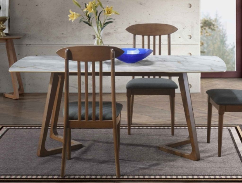 Table - H750 x D900 x W1800MM Sintered Stone TopChair - H993/475 x D540 x W510MM Walnut