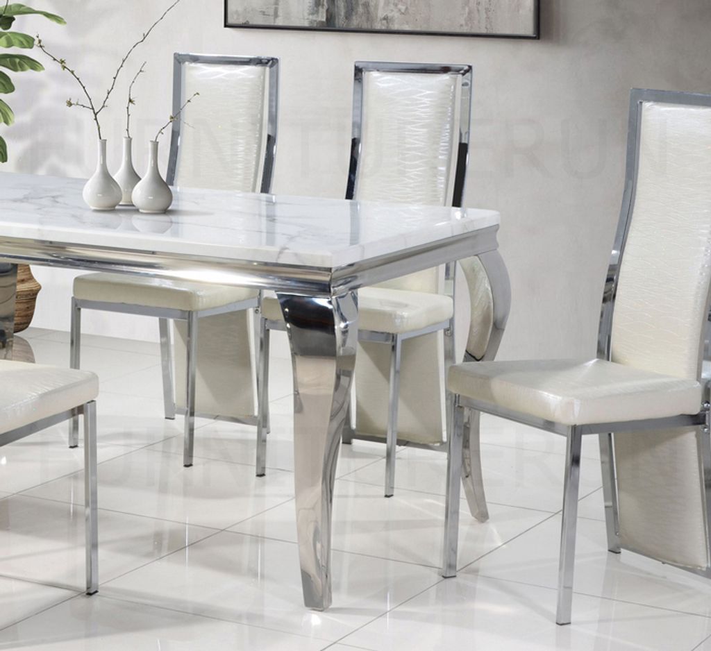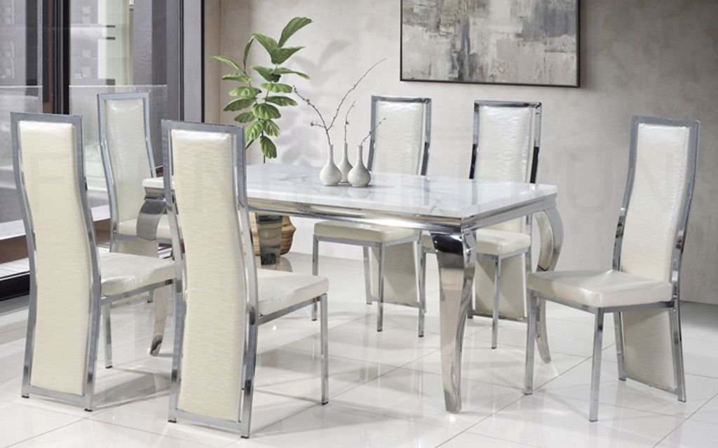 Table - H770 x D900 x W1500MM White Marble + Silver FrameChair - H1090/480 x D420 x W520MM White PU + Silver Frame