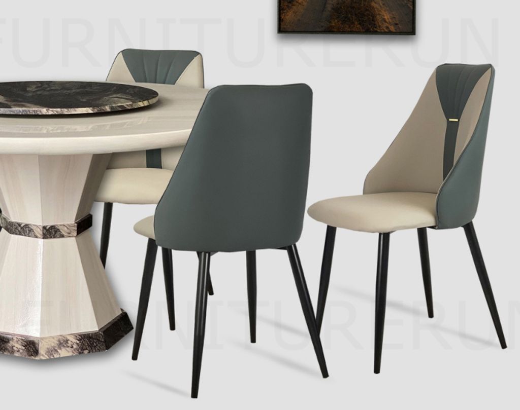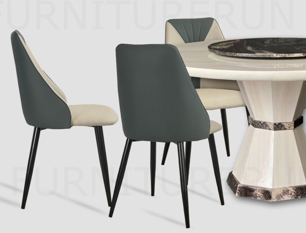 Table M35110 - H760 x D1500 x W1500 + 800MM Top T50MM / Natural Coating Marble Top & LegChair C1280T-C280B - H930 x D470 x W430MM PU Leather Seat / Black Metal Leg
