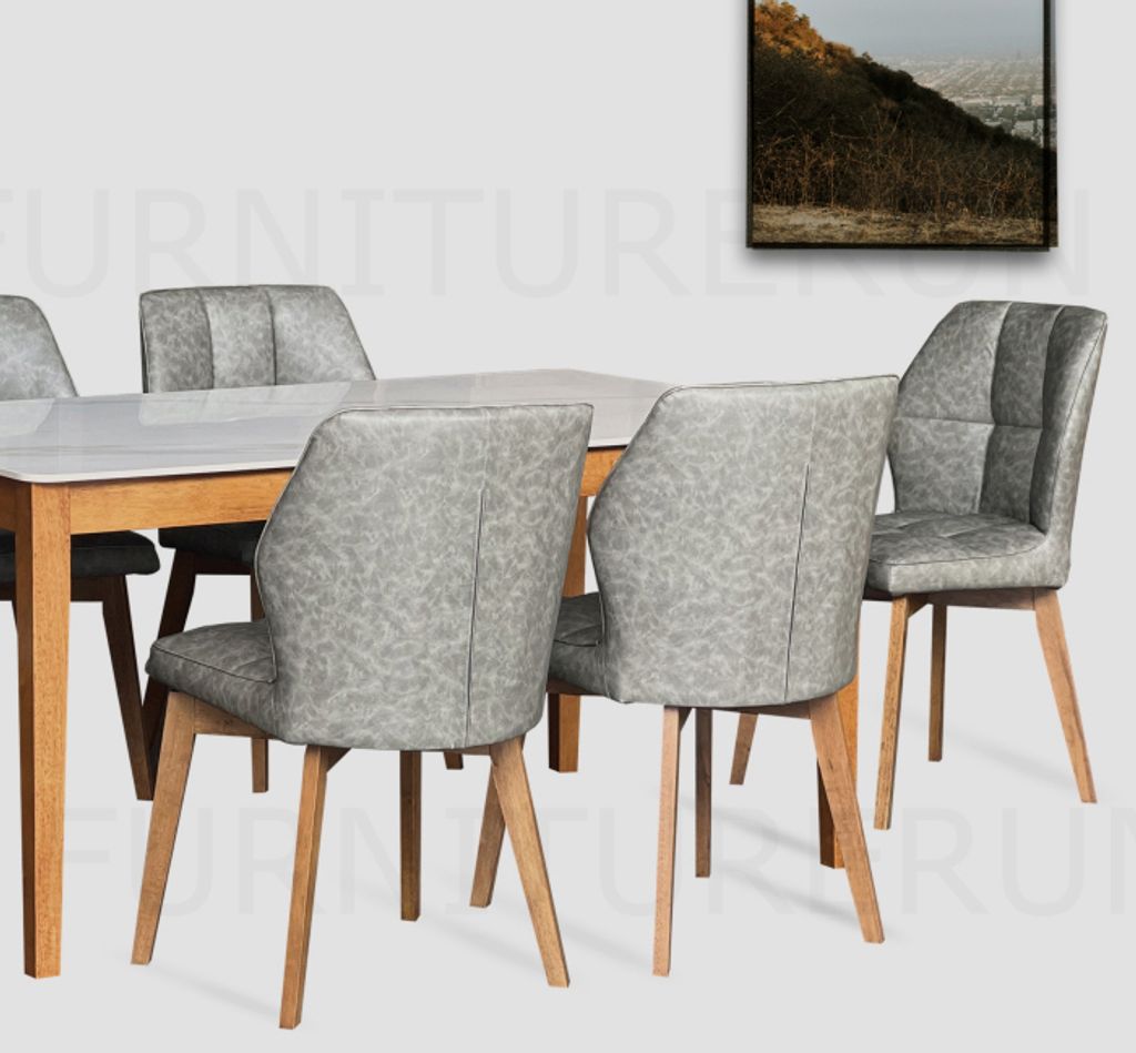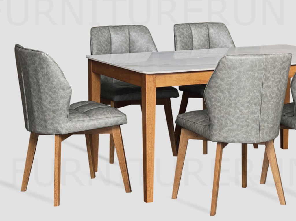 Table MT8401 T9199 - H760 x D800 x W1400MM Top T12MM / Sintered Stone Top Glossy Feeling & Solid Rubberwood LegChair C705 T701 - H860 x D500 x W460MM PU Leather Seat / Solid Rubberwood Leg