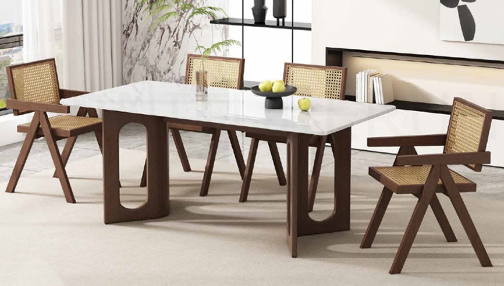 Table - Solid Wood Veneer Leg with Glossy Ceramic Top