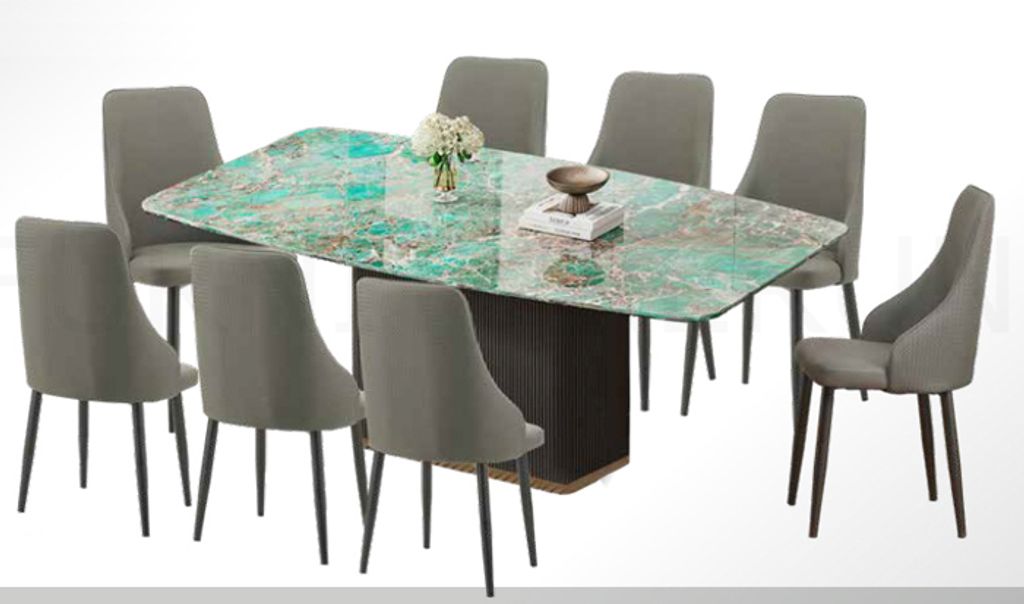 Table - Spray Paint Steel Leg with Stainless Steel Gold Skirting with Crystal Marble