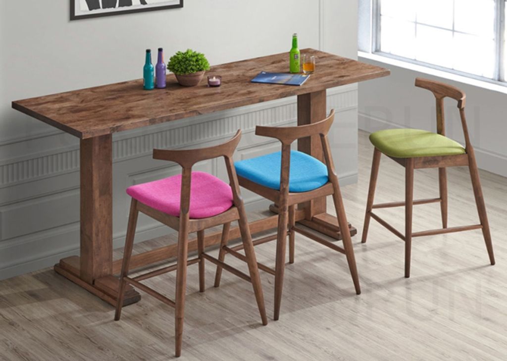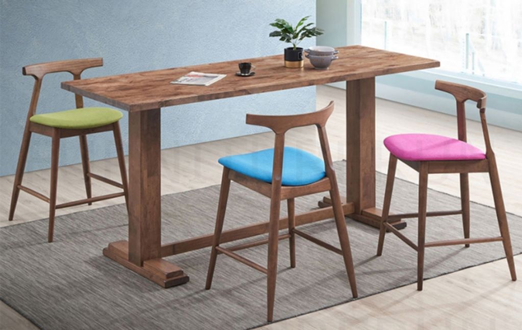 Table - H950 x D700 x W2000MM Walnut Stool - H940/660 x D530 x W525MM Blue, Green, Grey, Orange, Purple, Yellow