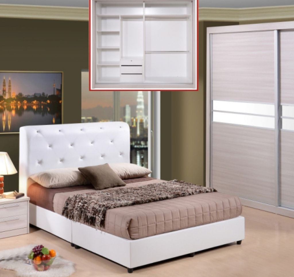 Queen Bed - H1220 x D2120 x W1520MM Wardrobe - H2390 x D610 x W2390MM Dresser & Mirror - H1820 x D400 x W810MM Bedside Table - H420 x D395 x W472MM