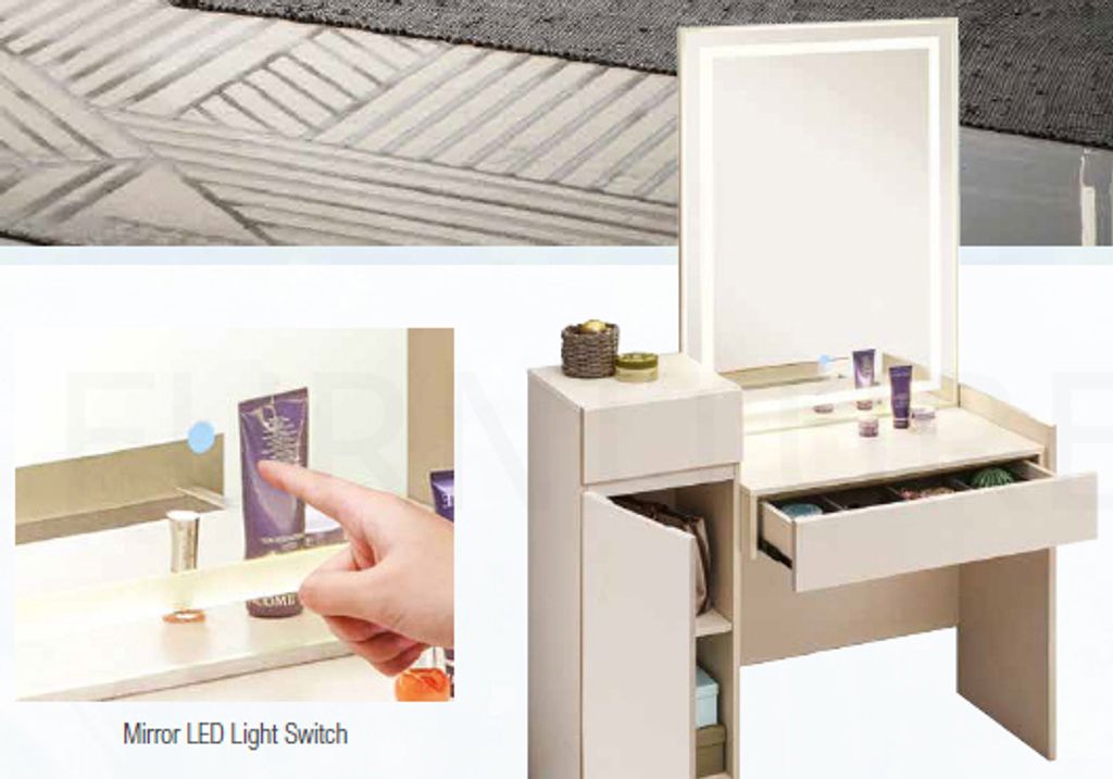 5' Bed - H1120 x D2000 x W1600MM Side Table - H500 x D420 x W640MM x 1Dresser - H1780 x D420 x W1100MM Wardrobe 8F - H2400 x D610 x W2420MM Mattress not Included