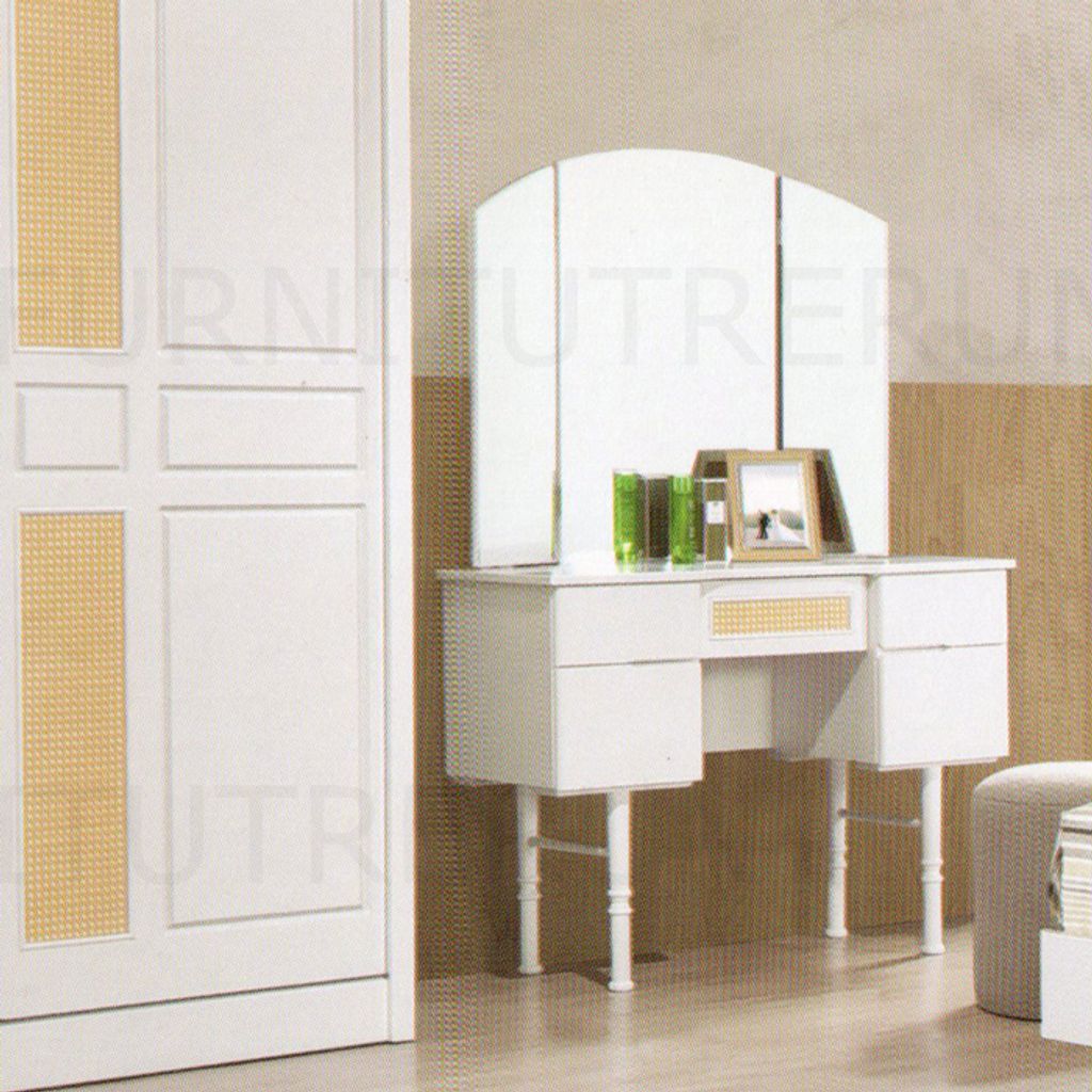 Queen - H47" x D78" x W66" White / RattanDressing Table D77 - H66.5" x D16" x W42" Stool - H17" x D16" x W16" Side Table - H19" x D16" x W16" - 1X Wardobe W78 - H80" x D22.5" x W60" WhiteRattan