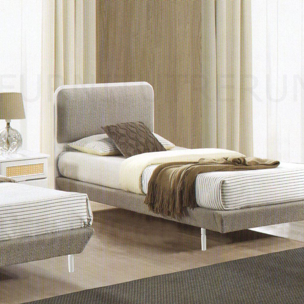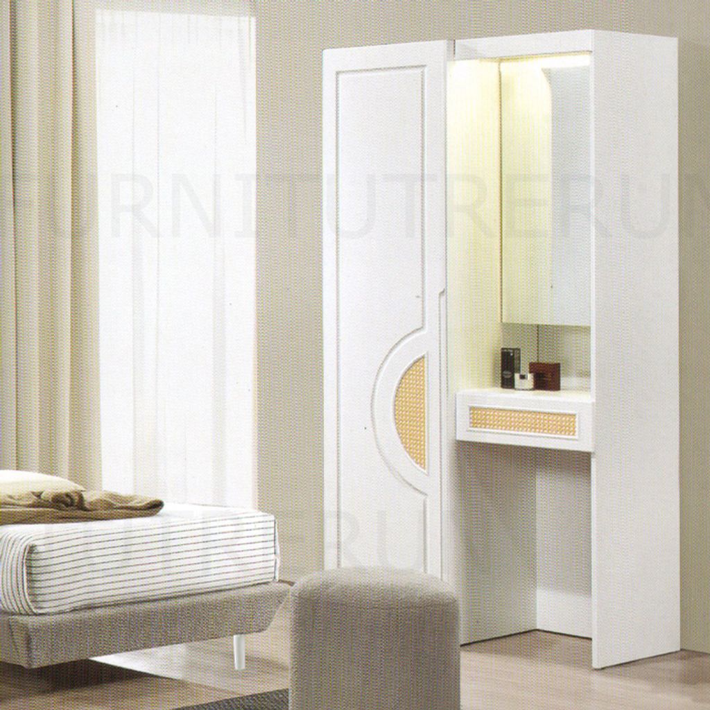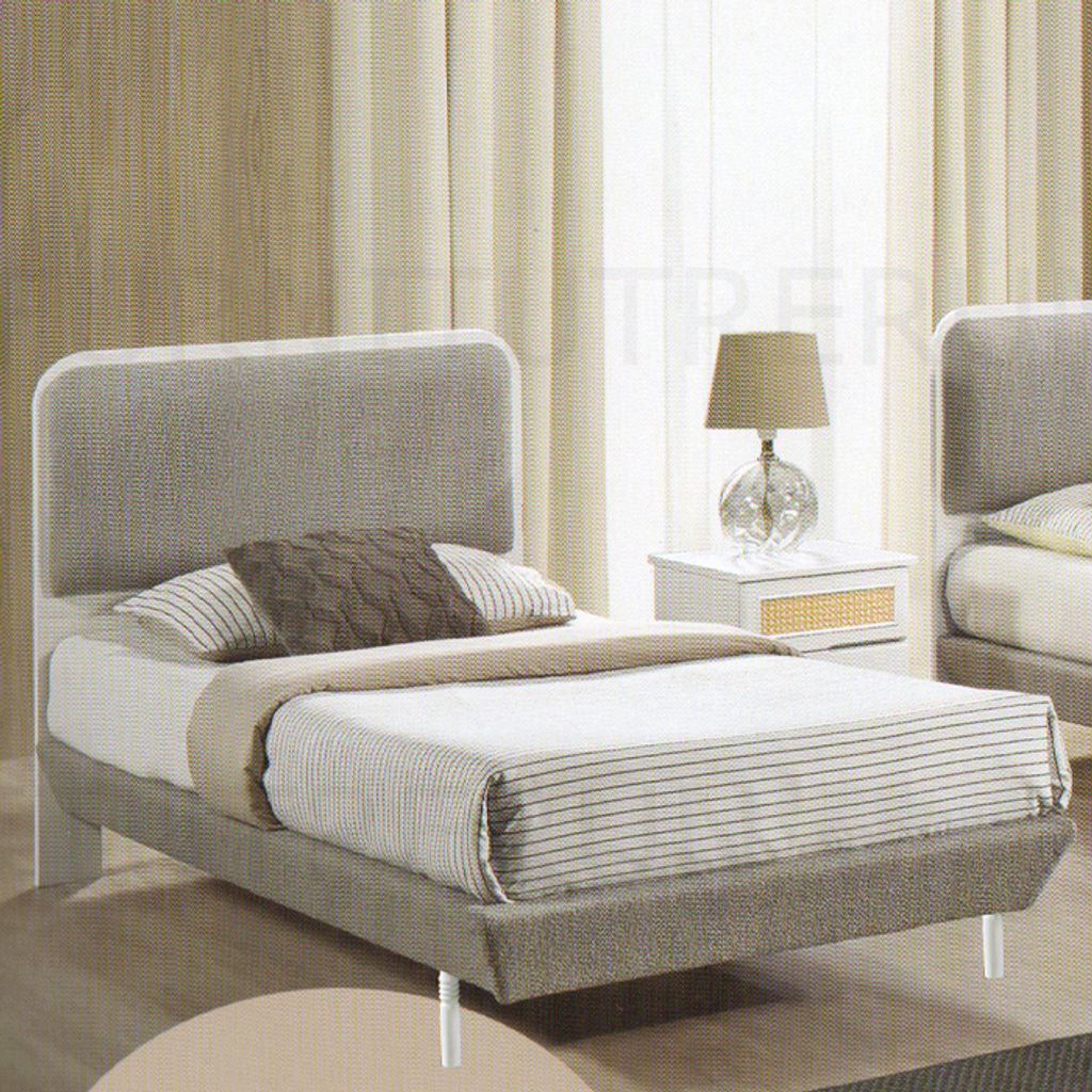 Single B-102 - H36" x D77" x W38" - 2XWhite / Grey FabricStool - H17" x D16" x W16" Side Table - H19" x D16" x W16" - 1XWardobe W82 - H72" x D20" x W36" WhiteRattanGrey Fabric Mattress not Included