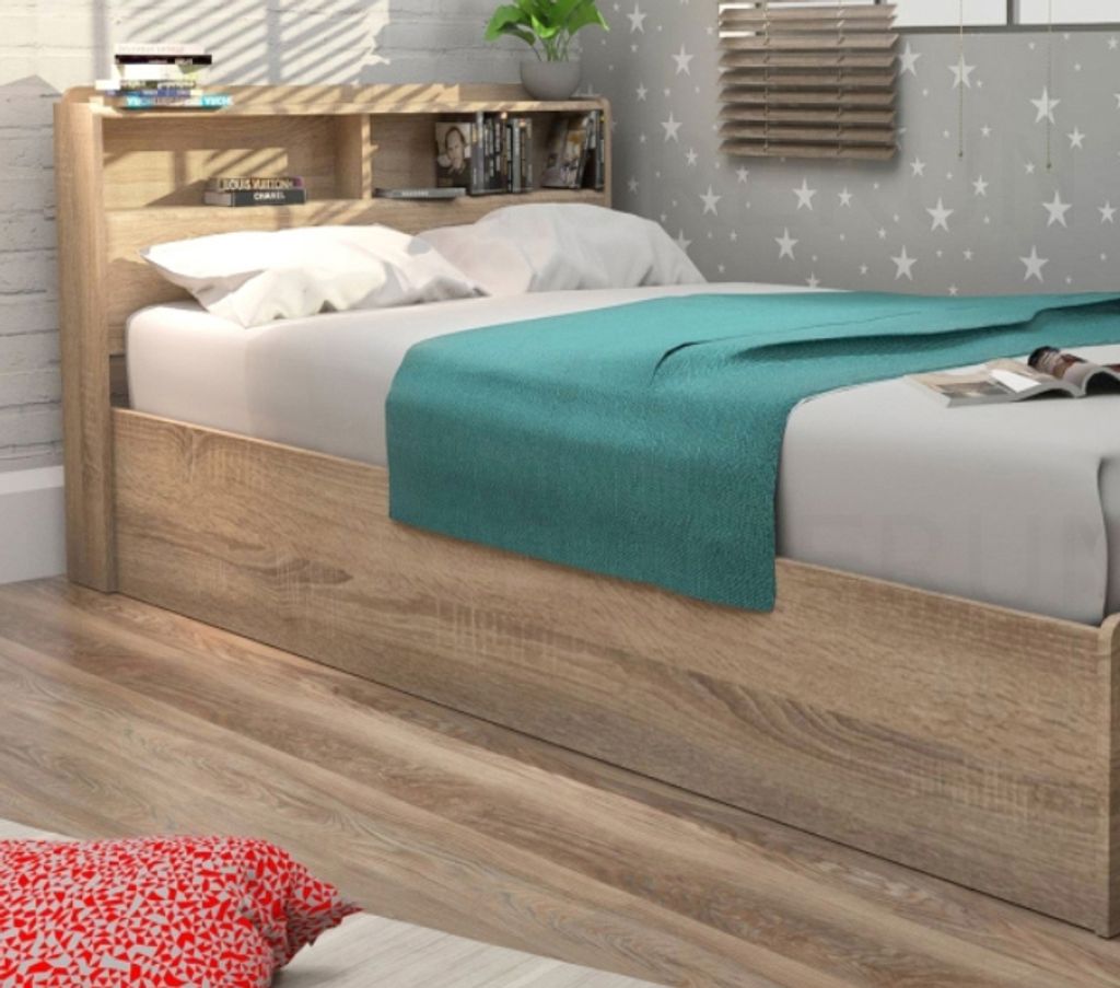 H760 x D2065 x W980MM White, Hana OakMattress not Included