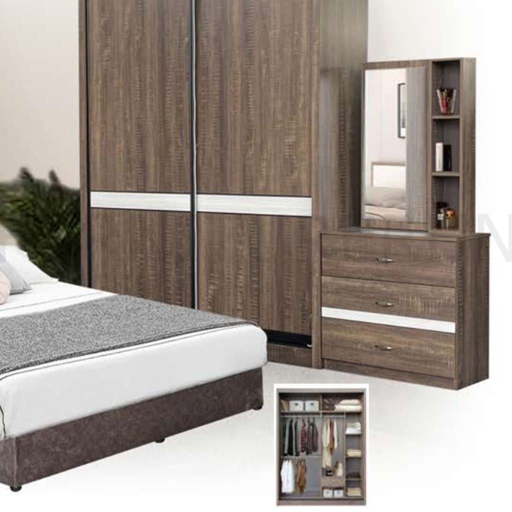 Queen - H1070 x D1530 x W2030MM Wardrobe - H2400 x D520 x W1800MM Dresser Table - H1670 x D405 x W600MM Side Table - H400 x D300 x W350MM x 1Mattress not Included