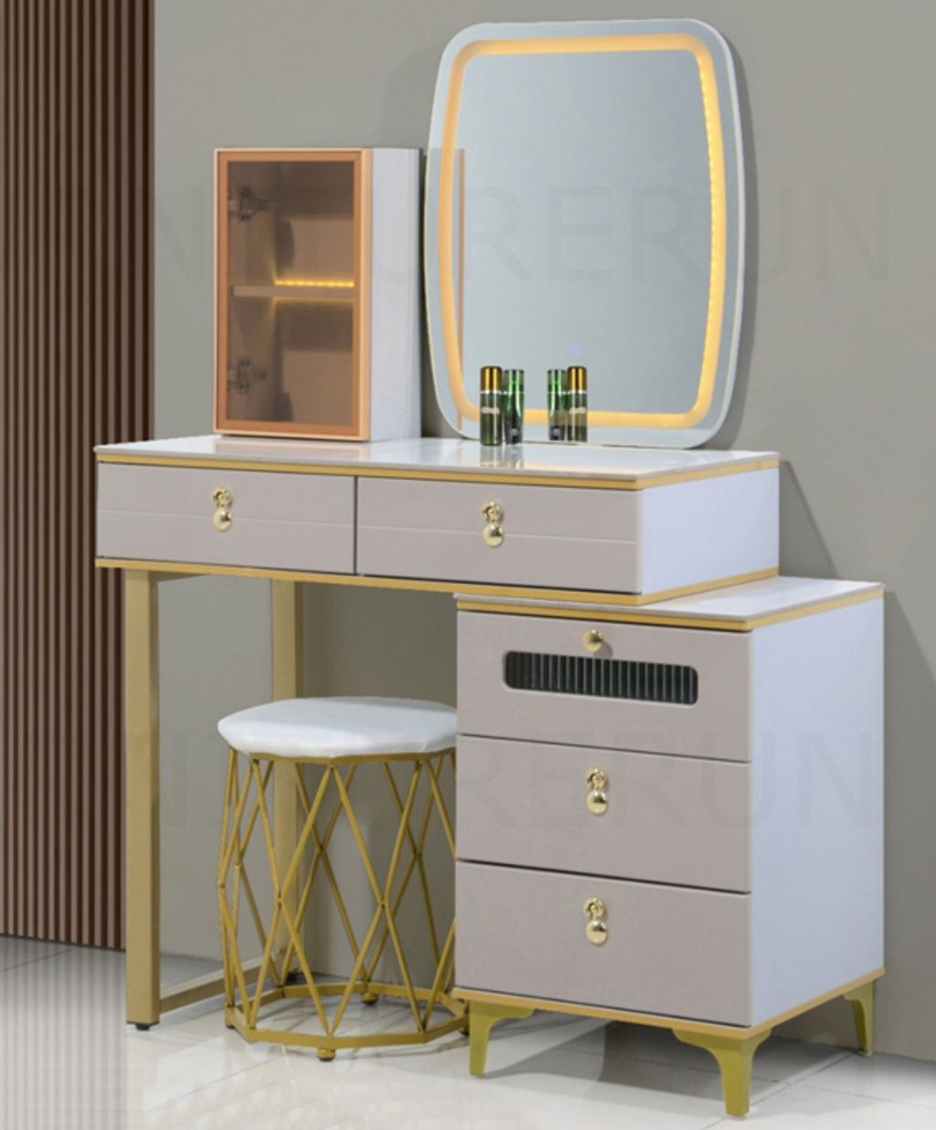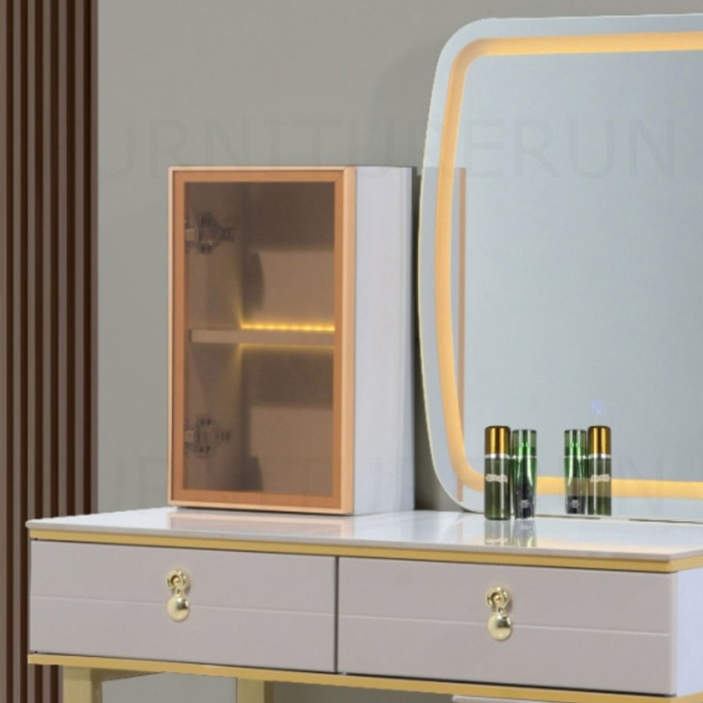 Table - H1335 x D400 x W800MM CB - H600 x D400 x W400MM Stool - H400 x Diam. 350MM Light Grey+Gold Stool-White+Gold Frame