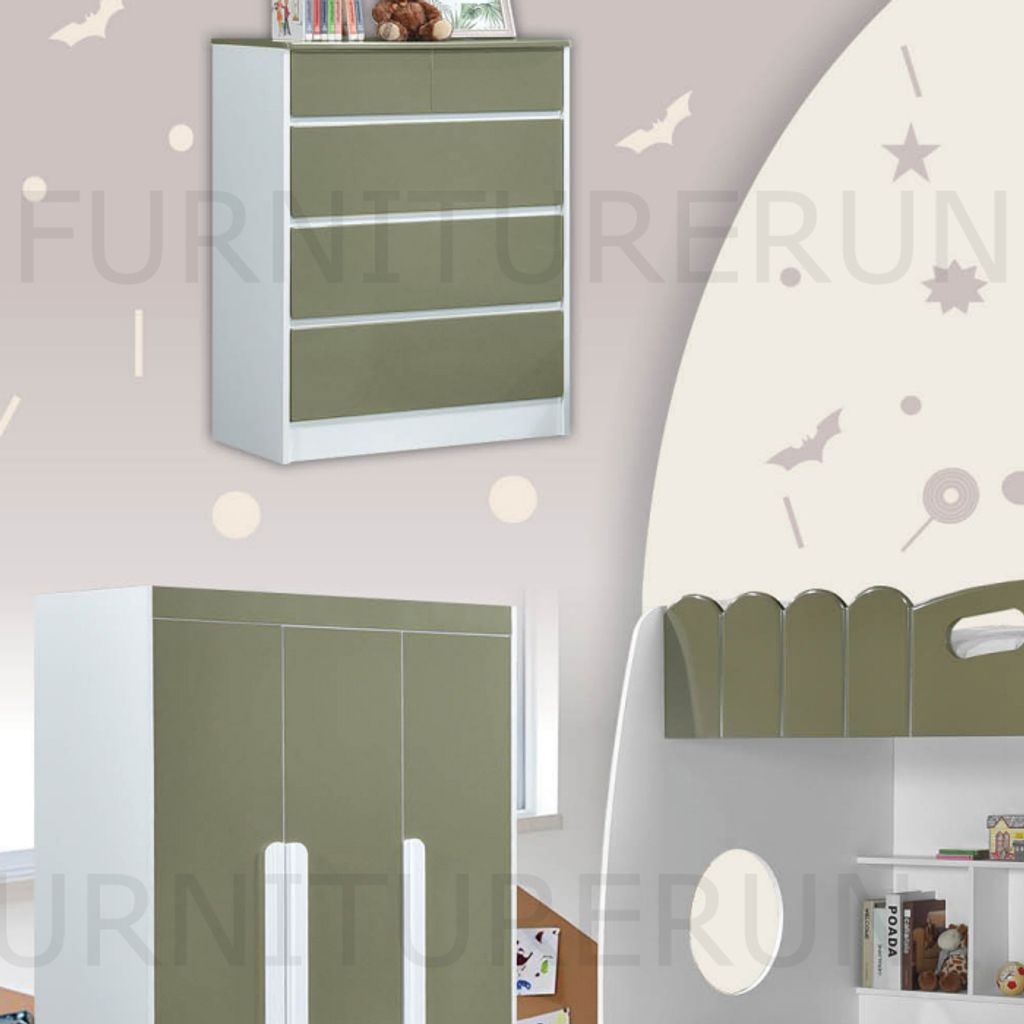 Single Bunk + Pull Out - H72" x D47" x W77"3D Wardrobe - H72" x D19" x W45"Chest - H42" x D19" x W32" Mattress Not Included