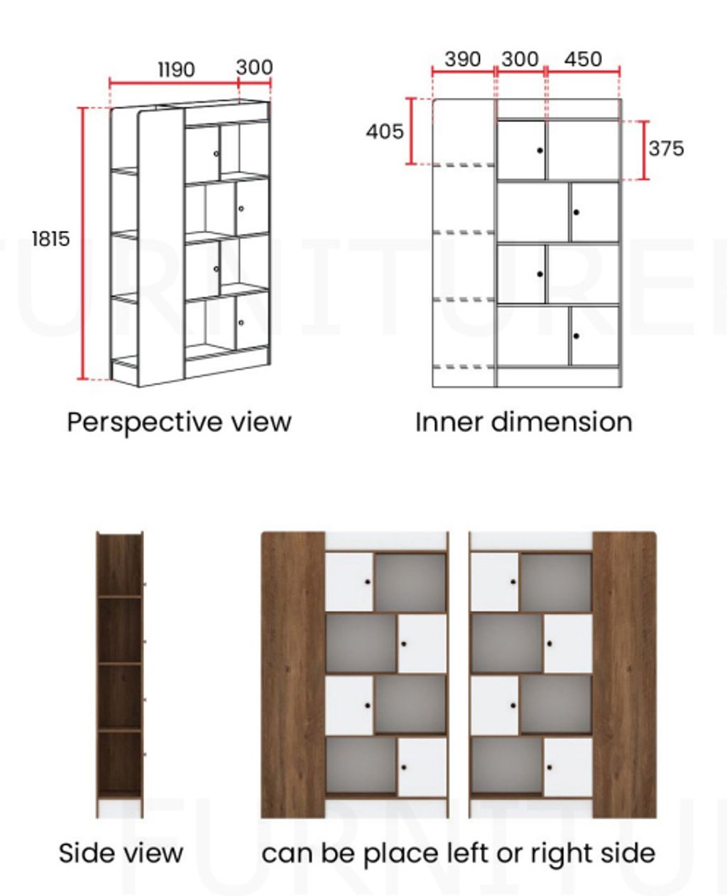 H1810 x D300 x W1190MM