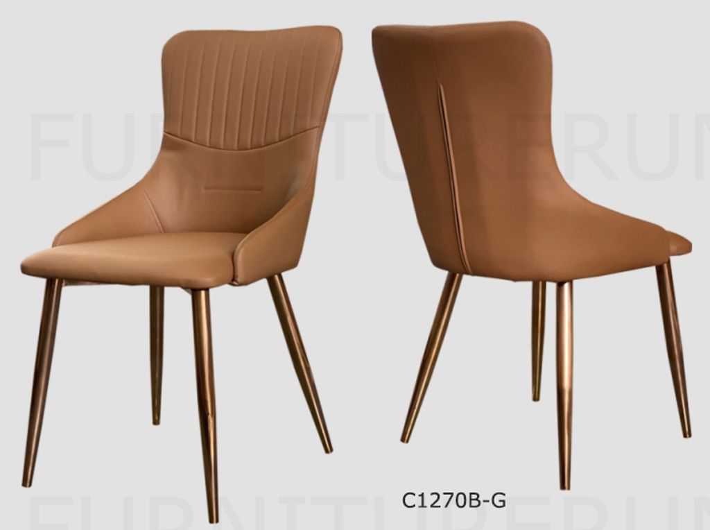 PU Leather Seat / Light Brown / Coated Rose Gold Metal Leg