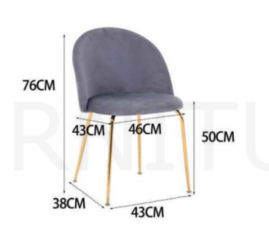 H760/500 x D380 x W430MM Velvet Fabric with Shiny Gold Chromed Leg