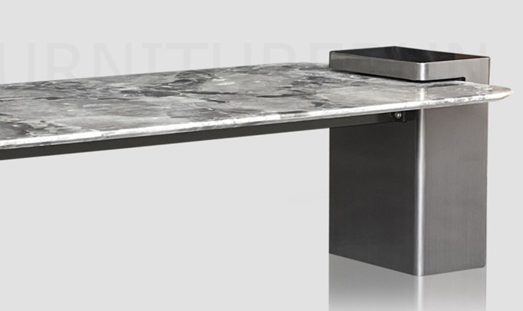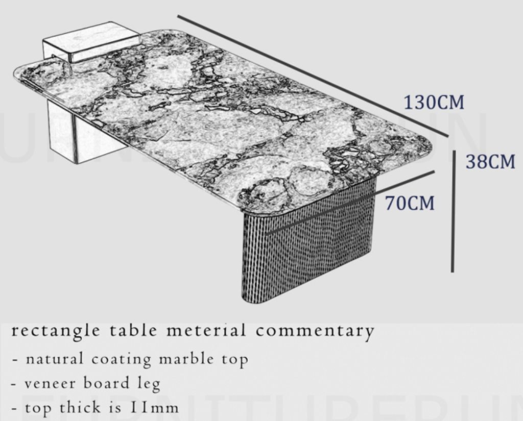 H380 x D700 x W1300MM Top T11MM / Natural Coating Marble Top / Veneer Board Leg / High Gloss Grey Box