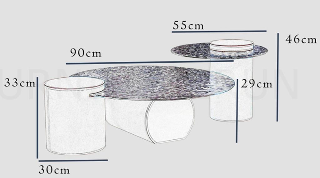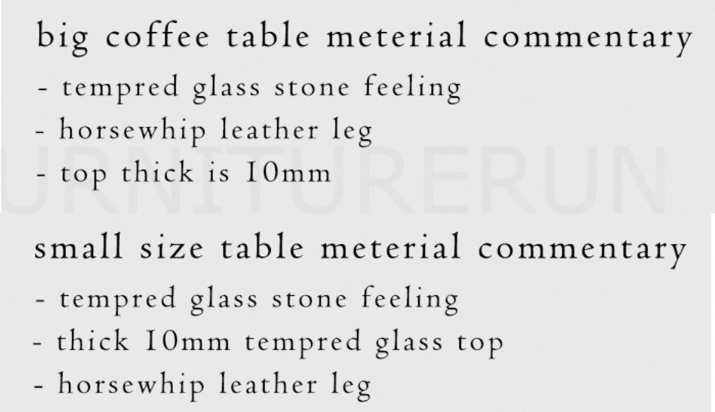 A - H330 x D300 x W300MM B - H290 x D900 x W900MM C - H460 x D550 x W550MM Top T10MM Tempered Glass Stone Feeling / Horsewhip Leather Leg