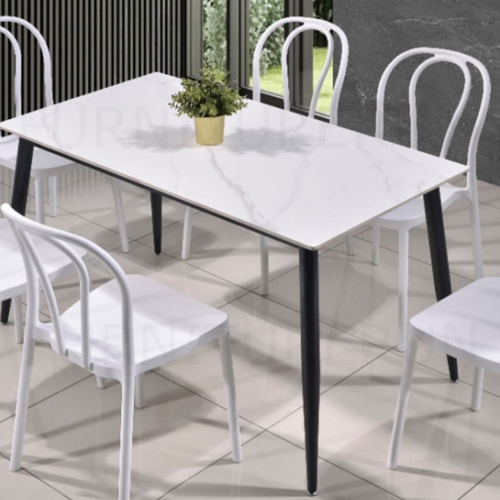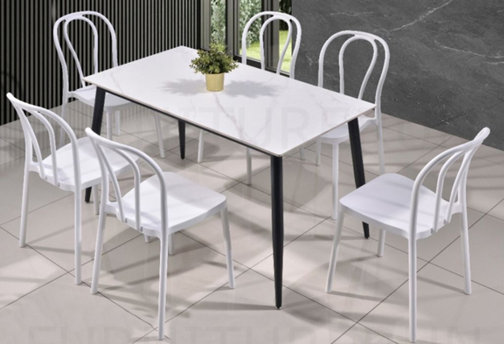 Table - H760 x D700 x W1300MM Sintered Stone Top + Black Frame TableChair - H865/470 x D420 x W530MM PP White