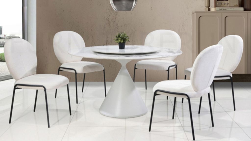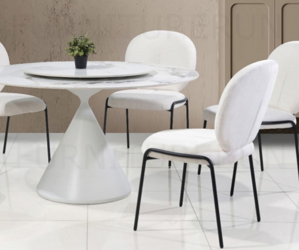 Table - H760 x Diam. 1350MM Roving - Diam. 800MMGrey Top & Black FrameChair - H910/470 x D560 x W620MM White Chenille Fabric + Black Leg