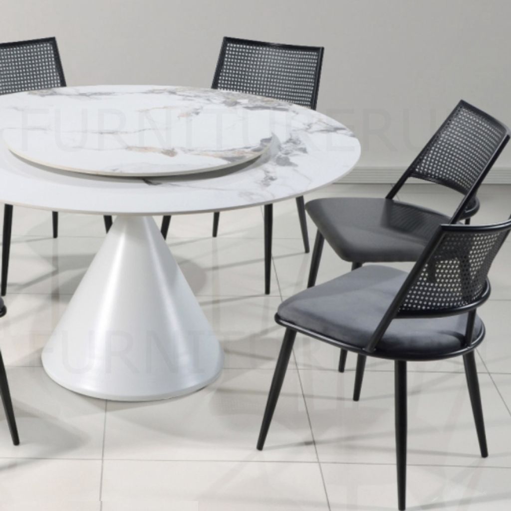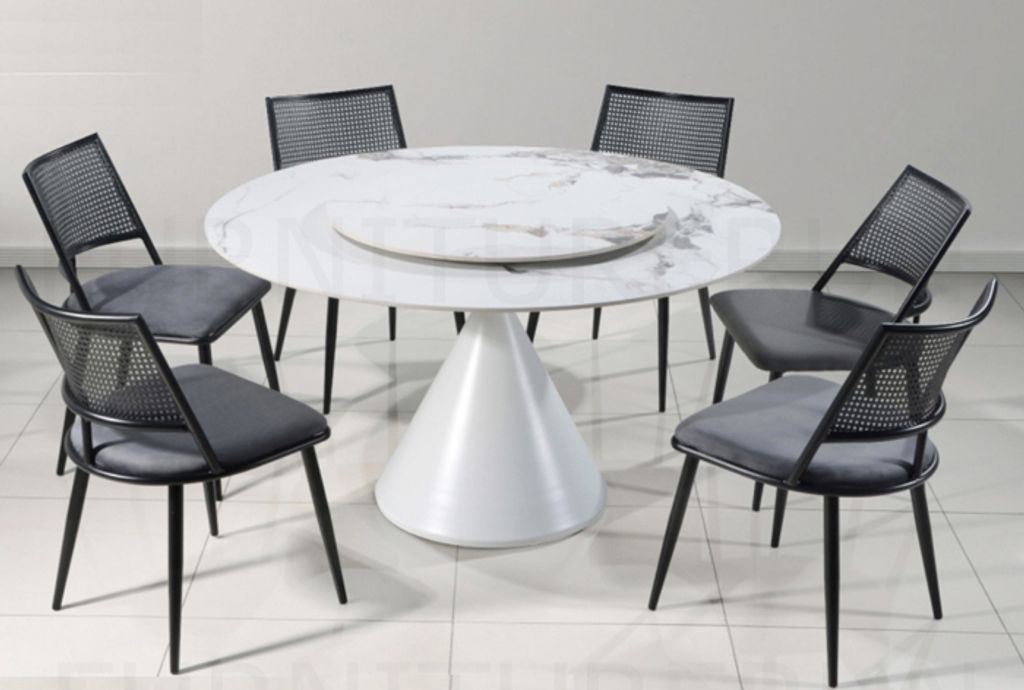 Table - H760 x Diam. 1350MM Roving - Diam. 800MM12MM Patek Sintered Stone & Roving Top + White Metal FrameChair - H800/460 x D480 x W540MM PE Rattan & Powder Coated LegSeat - Grey Frame - Black