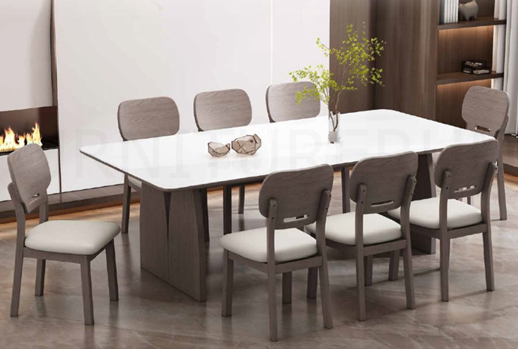 Table - H750 x D900 x W1800MMChair - H880 x D430 x W420MM Solid Rubberwood Structure with Tempered Glass Top & PU Leather