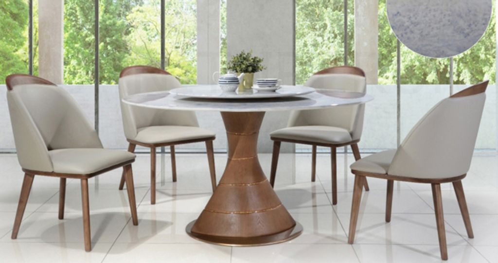 Table - H750 x Diam. 1350MM Roving Top - Diam. 700MM Marble Top + Ash Solid Wood FrameChair - H890/430 x D550 x W600MM Grey Microfiber Leather + Walnut Leg