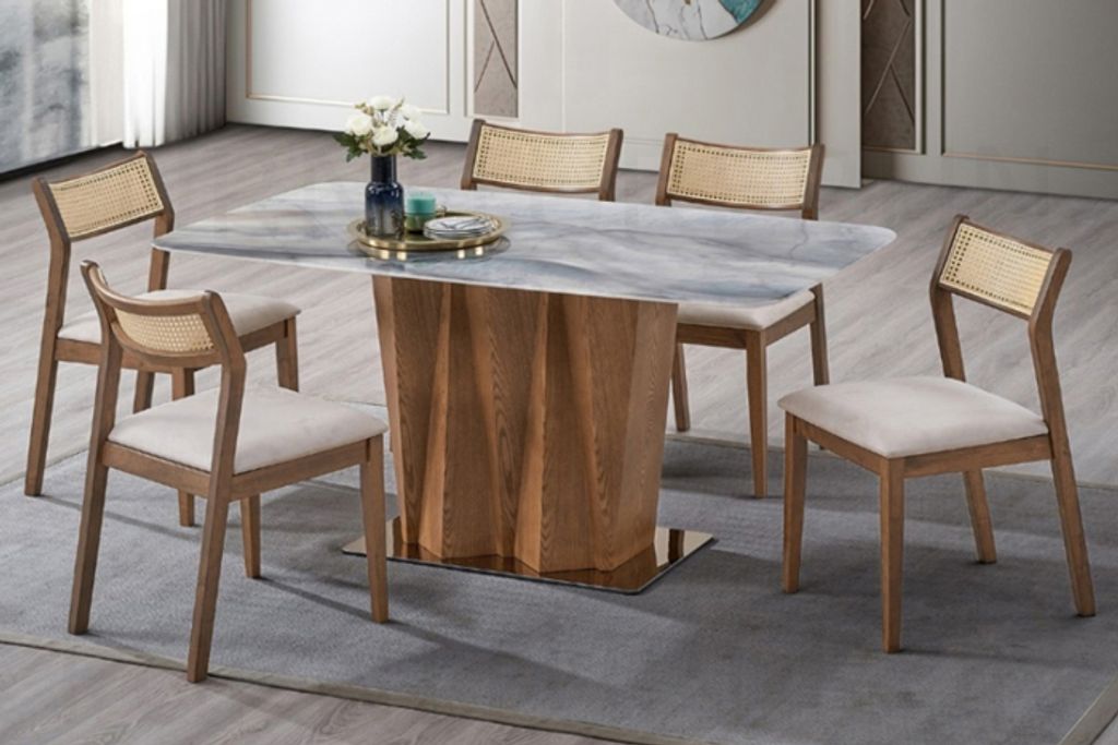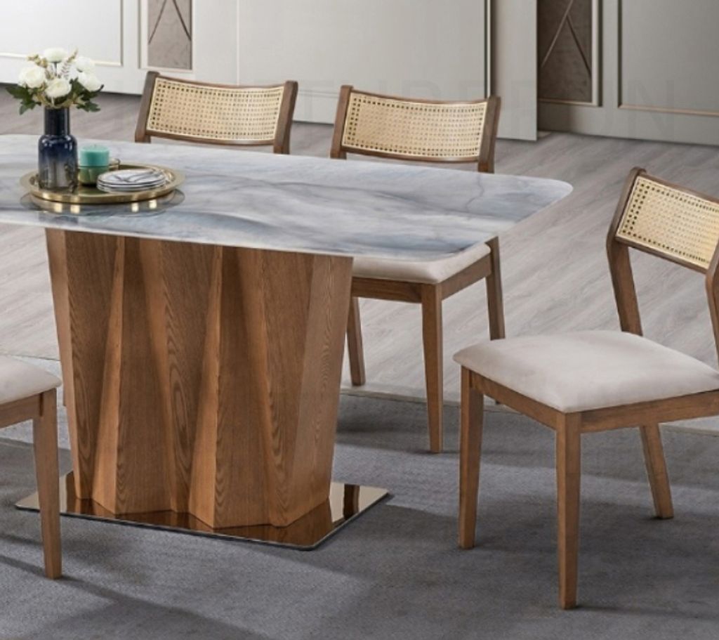 Table - H750 x D900 x W1600MM Crystal Marble Top + Walnut FrameChair - H805/490 x D530 x W490MM Walnut
