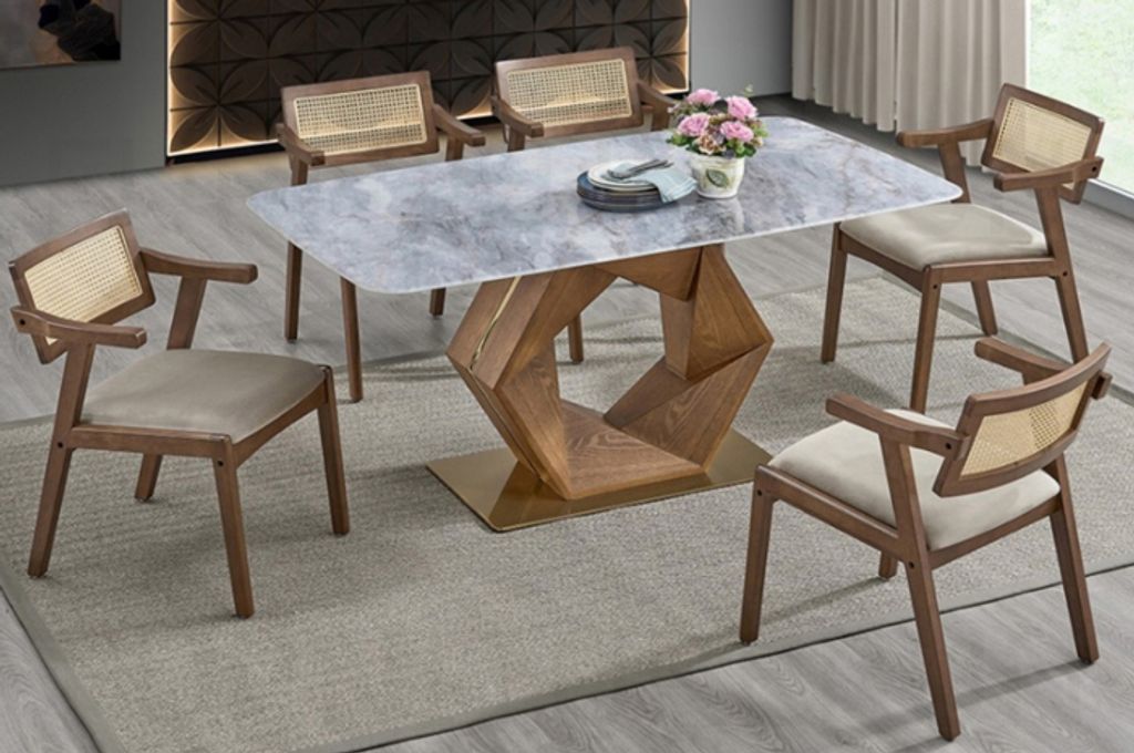 JZX-DT-H15 + GOLD 15-5514-DC-WL-BR 7PC Dining Set