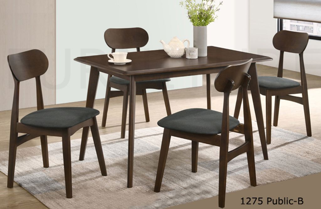 1275 Public-A + Public-A (Natural)1275 Public-B + Public-B (Walnut)Table - H750 x D750 x W1200MM Chair - H810 x D470 x W465MM