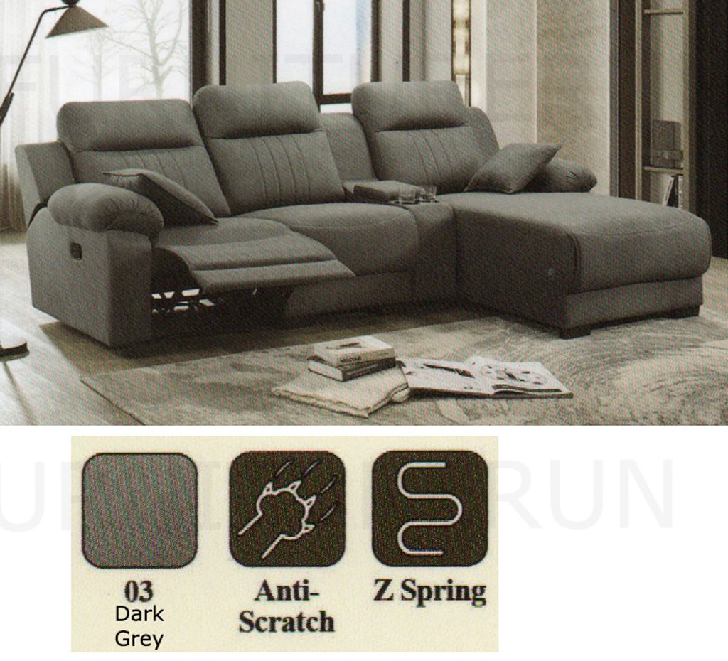 H39" x D64" x W103" L-Shape Recliner SofaGuardian-03 Dark GreyAnti Scratch, Z-Spring