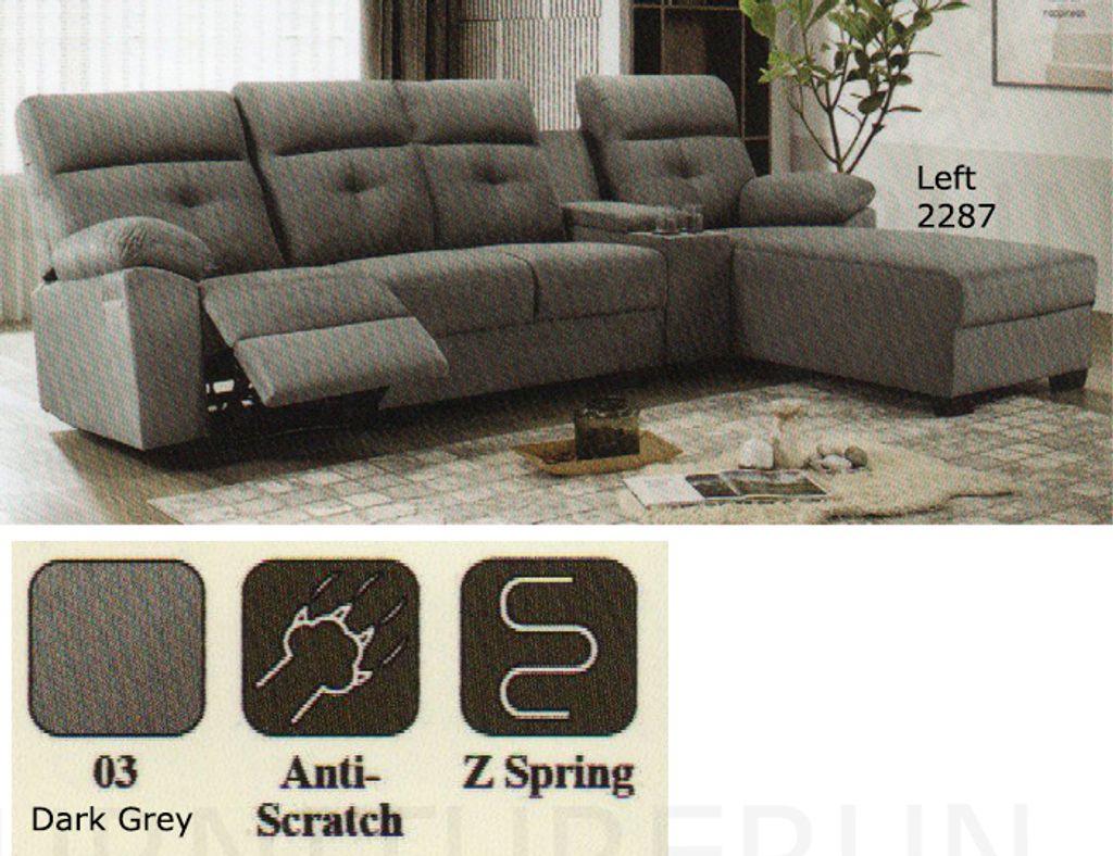 H40" x D72" x W124" (4L-Shape Recliner with Cup Holder)Guardian-03 Dark GreyAnti Scratch, Z-Spring